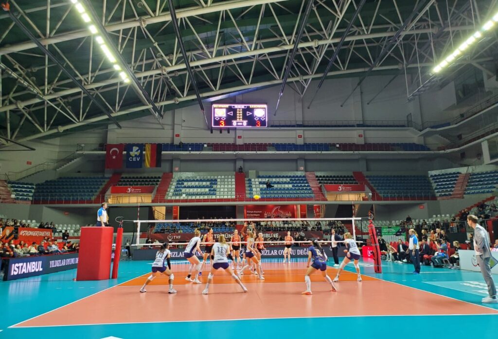 Felix Koslowski startete den zweiten Durchgang Leana Grozer und Fleur Savelkoel von Beginn an und der Satz begann ausgeglichen. Für Schwerin punkteten Grozer und Dambrink, doch auch Baladin, Rettke und vor alle Jack-Kisal erlaubten sich auf der anderen Seite des Netzes kaum Fehler und so stand es 10:8. Als Istanbul auf 14:10 erhöhte, nahm Schwerin die erste taktische Auszeit des Satzes. Annahme und Eigenfehlerquote galt es zu korrigieren, um Istanbul nicht zu weit wegziehen zu lassen. Mit guten Aufschlägen von Karla Antunovic kam Schwerin auf 16:14 heran und ihr kroatischer Nationalmannschaftstrainer – Ferhat Akbas – nahm direkt die Auszeit für die Gastgeberinnen. Ein Block von Keene verkürzte zum 16:15 und Fleur Savelkoel gelang der Ausgleichstreffer. Antunovic’s Aufschläge brachten die 16:18 Führung für die Gäste und den Favoriten aus Istanbul etwas in Straucheln. Grozer und Dambrink nehmen den Schwung mit und auch Savelkoel punktet aus dem Hinterfeld zum 18:21. Istanbul zeigte Nerven und bis zuletzt war den Schwerinerinnen der Satzgewinn zum Greifen nah, doch pünktlich zur Entscheidung kamen die Gastgeberinnen heran und es servierte Tijana Boskovic zum 24:23 Satzball. Denkbar knapp ging der zweite Durchgang mit 25:23 an Eczacıbaşı Istanbul, doch er sollte Mut machen, dass mit guten Aufschlägen und Aggressivität im Angriff auch in fremder Halle ein Satzgewinn möglich ist.