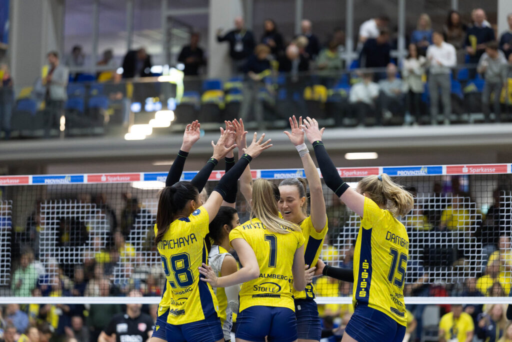 Am Samstag gastiert mit dem VC Wiesbaden der aktuelle Tabellen-Sechste in der Schweriner Palmberg Arena. Inzwischen wurde durch die Verantwortlichen des VCW der langjährige Trainer Benedikt Frank zum Sportdirektor berufen, seinen Job als Coach an der Seitenlinie übernahm zum Jahreswechsel Tigin Yaglioglu, im Vorjahr noch beim VC Neuwied unter Vertrag. Nach einer schmerzlichen Heimniederlage gegen Münster zu Jahresbeginn folgte ein 3:1-Heimsieg gegen Potsdam, wobei man hier von der schweren Verletzung von Cholet zu Spielbeginn profitierte. Der kleine Kader spielt seit Saisonbeginn im Prinzip mit einem Stammsechser durch, zuletzt probierte man recht erfolgreich die Außenangreiferin Rusek auf Diagonal für Youngster Jebens, die sicherlich die positive Überraschung im Kader des VC darstellt.„Wiesbaden hatte im Saisonverlauf Höhen und Tiefen, zeigt aber in den letzten Spielen einen klar positiven Trend. Der Sieg in Erfurt war unglaublich wichtig für sie, und auch der 3:1-Erfolg gegen Potsdam hat ihnen mit Sicherheit viel Selbstbewusstsein und Zuversicht gegeben. Das ist eine Mannschaft mit Erfahrung – Spielerinnen wie Tanja Großer, Greta Kys oder Anderson bringen viel Qualität mit. Wiesbaden ist sehr spielstark, verteidigt extrem gut und hat einen starken Aufschlag. Wir haben uns immer schwergetan gegen sie. Deshalb brauchen wir morgen Geduld, um ins Scoring zu kommen, und müssen uns auf ihre Spielweise einstellen. Das wird ein anderer Gegner als Tent, darauf müssen wir vorbereitet sein,“ resümiert Felix Koslowski vor dem Bundesliga-Duell.