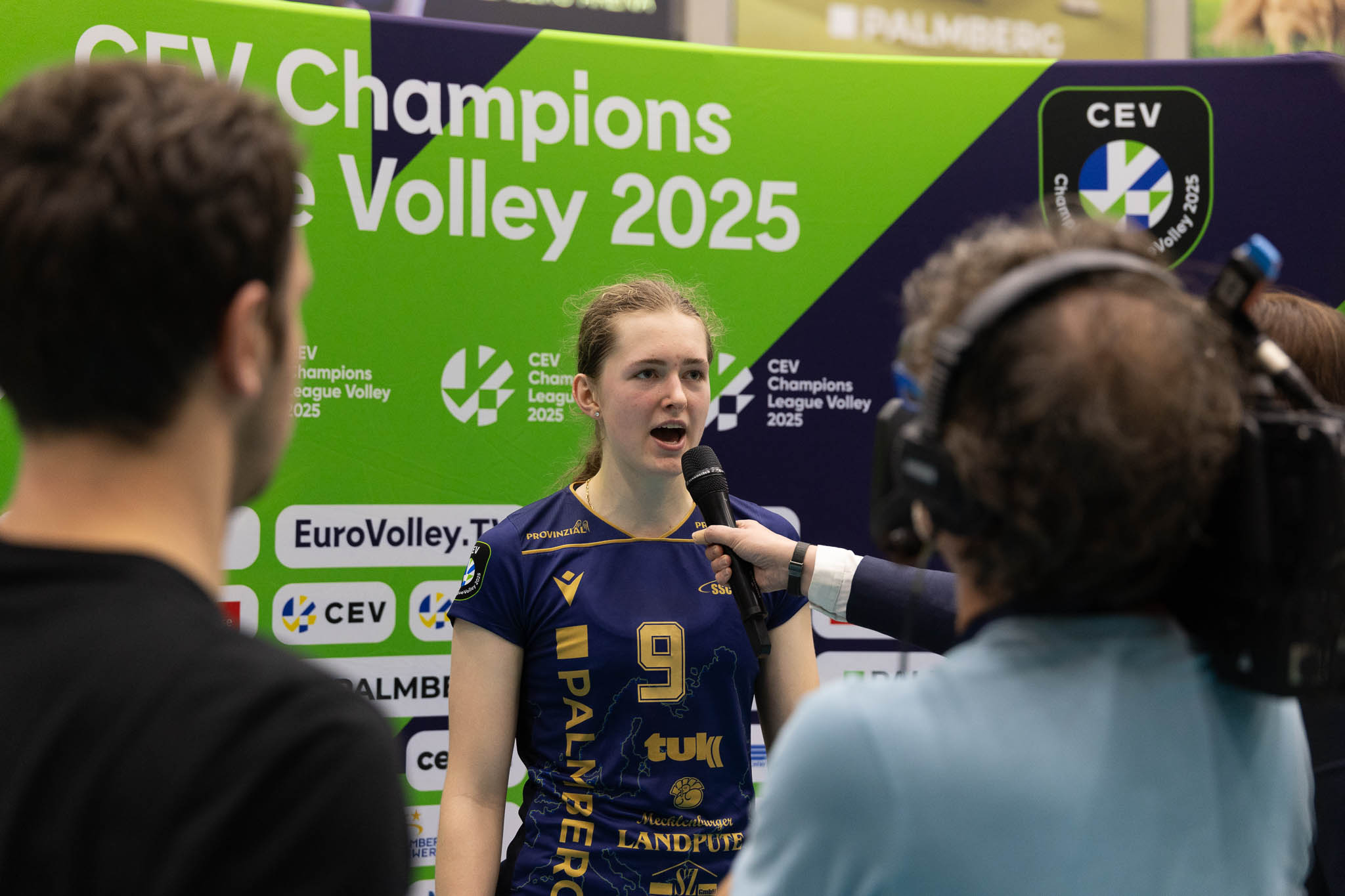 Aachens Ilieva hielt ihr Team mit druckvollen Angriffen im Spiel, und die Partie entwickelte sich zunehmend zu einem offenen Schlagabtausch. Beide Mannschaften punkteten über weite Strecken im Gleichschritt, ehe ein Ass von Celine Jebens die Schweriner Annahme ins Wanken brachte und Aachen mit 17:15 in Führung ging. Trotz einer Auszeit des SSC fanden die Gastgeberinnen ihren Rhythmus und bauten den Vorsprung auf 19:15 aus. Ein Doppelwechsel bei Schwerin – Jaksetic und Vos, die an diesem Abend auf der für sie ungewohnten Diagonalposition die erkrankte Mia Kirchhoff vertrat – brachte neuen Schwung. Ein Ass von Leana Grozer verkürzte auf 20:18, doch Aachen blieb entschlossen und spielte den Satz mutig zu Ende. Celine Jebens sicherte ihrem Team mit vier Satzbällen die Chance auf den Anschluss und verwandelte direkt den ersten – 25:20 für die Ladies in Black Aachen, die damit das Spiel um mindestens einen Durchgang verlängerten.