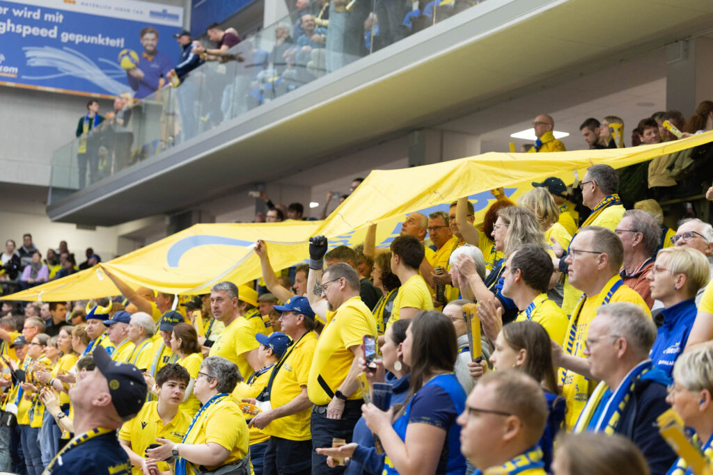Das Topspiel des letzten Spieltags der Volleyball Bundesliga der Frauen begann in einer ausverkauften Palmberg Arena mit hochklassigen Aktionen auf beiden Seiten. Weder der SSC Palmberg Schwerin noch Allianz MTV Stuttgart ließ Nervosität erkennen – beide Teams starteten mit druckvollen Aufschlägen und konsequent ausgespielten Angriffen. Entsprechend ausgeglichen gestaltete sich die Anfangsphase des Satzes. Mit starken Blockaktionen verschaffte sich der SSC jedoch eine erste kleine Führung zum 8:6. Besonders Suus Gerritsen setzte mehrfach energisch am Netz nach und steuerte zudem wirkungsvolle Angriffe zum 11:8-Zwischenstand bei. Angetrieben vom lautstarken Publikum blieb Schwerin geduldig im Spielaufbau und zwang Stuttgart immer wieder zu spektakulären Abwehraktionen, die jedoch keinen kontrollierten Gegenangriff ermöglichten. Beim Stand von 12:8 reagierte Stuttgarts Trainer Konstantin Bitter mit einer Auszeit und brachte kurz darauf per Doppelwechsel Shaffmaster und Grote aufs Feld. Als der amerikanischen Zuspielerin anschließend ein Zuspiel auf Kapitänin Toni Stautz misslang, griff Bitter sofort zur nächsten Auszeit. Schwerin blieb derweil variabel und punktete aus nahezu allen Angriffspositionen. Mit einer zwischenzeitlichen Angriffsquote von 50 Prozent setzten sich die Gastgeberinnen deutlich ab und zogen auf 17:11 davon. Stuttgart reagierte mit einem weiteren Wechsel – Mogensen kam für Holthaus – und nahm auch den Doppelwechsel wieder zurück, doch eine echte Aufholjagd blieb aus. Mit einem Vorsprung von sechs Punkten ging Schwerin in die erste Crunchtime des Abends. Das Team um Zuspielerin Hannah Kohn blieb trotz der euphorischen Stimmung in der Halle konzentriert, spielte die Angriffe geduldig aus und erarbeitete sich beim Stand von 24:18 den ersten Satzball. Wenig später verwandelten die Gastgeberinnen diesen zum 25:19 und sicherten sich damit den ersten Durchgang gegen die Tabellenführerinnen aus Stuttgart.