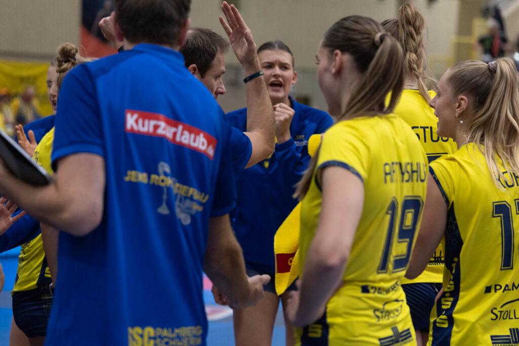 Der SSC Palmberg Schwerin setzte sich gegen die Skurios Volleys Borken mit 3:0 durch. Nach einem klaren 25:15 im ersten Satz geriet Schwerin im zweiten Durchgang kurz unter Druck, kämpfte sich aber auf 25:23 zurück. Im dritten Satz kontrollierte Schwerin das Spiel erneut und sicherte sich mit 25:17 den verdienten Sieg. Borken zeigte vor allem im zweiten Satz eine starke Leistung, konnte den Favoriten jedoch nicht ernsthaft gefährden. Der SSC Palmberg Schwerin startete hellwach in die Partie und setzte von Beginn an ein deutliches Zeichen. Eine starke Aufschlagserie von Zuspielerin Hannah Kohn brachte die Gastgeberinnen früh mit 6:0 in Führung. Mit sicherem Blockspiel und variablem Zuspiel ließ der Favorit dem Aufsteiger aus Nordrhein-Westfalen kaum Zugriff auf das Spielgeschehen. Immer wieder gelang es Schwerin, über das erste Tempo zu punkten, während Stuut, Artyshuk und Kok mit druckvollen Aufschlägen zusätzlichen Druck aufbauten. Die Punkte der Gäste resultierten meist aus Eigenfehlern des SSC. Beim klaren Zwischenstand von 17:7 steuerten die Schwerinerinnen souverän der Satzentscheidung entgegen. Borken versuchte mit einem Doppelwechsel – Kastrup kam für Konjer, Rudde für Loker – neuen Schwung zu bringen, doch auch Schwerin reagierte taktisch und brachte beim Stand von 22:13 Kirchhoff und Jaksetic ins Spiel. Nach einem starken Angriff über die Mitte von Kretschmer vergab Schwerin zunächst zwei Satzbälle, bevor Jet Kok schließlich den dritten Versuch verwandelte und den ersten Durchgang mit 25:15 für den SSC Palmberg Schwerin entschied. Ein völlig anderes Bild zeigte sich im zweiten Durchgang, als Hannah Rudde die Gäste mit einer Aufschlagserie früh mit 0:4 in Führung brachte. Borken präsentierte sich nun deutlich aggressiver im Block und in der Feldabwehr und konnte den Vorsprung zunächst behaupten, da der Aufschlagdruck hoch war und auch am Netz konsequenter agiert wurde. Selbstbewusst punkteten Luther im Block und Kastrup mit einem starken Aufschlag zum 6:11. Schwerin tat sich bei mäßiger Annahme auch im Angriff schwer, sodass Trainer Felix Koslowski früh zur ersten Auszeit griff. Das Team ließ sich von der Entschlossenheit der Gäste beeindrucken, und Spielkombinationen, die im ersten Satz noch reibungslos funktionierten, wollten nun nicht auf Anhieb gelingen. Schwerin musste Geduld beweisen und akzeptieren, dass es in diesem Satz mehrere Anläufe für einen Punkt benötigte als noch zuvor. Unter den Augen von Olympiateilnehmer Georg Grozer, der auf Familienbesuch in Schwerin war, und Kira Walkenhorst, die als Co-Trainerin bei Borken auf der Bank saß, kämpften sich die Gastgeberinnen Punkt für Punkt heran und verkürzten auf 14:15. Ein Ass der bis dahin fleißigsten Punktesammlerin Iris Vos brachte schließlich den Ausgleich und sorgte für Jubel bei den Schweriner Fans. Es entwickelte sich ein Kopf-an-Kopf-Rennen bis in die Crunchtime. Das Schweriner Trainerteam reagierte und brachte Kapitänin Anne Hölzig für Jet Kok, um der Annahme in dieser entscheidenden Phase mehr Stabilität zu verleihen. Mit einer wachen Aktion am Netz sorgte Luisa van Clewe für das 24:22, doch Madleen Piest konnte zunächst abwehren. Schließlich verwandelte Anne Hölzig einen hohen Ball souverän zum 25:23 und sicherte Schwerin damit den Gewinn des zweiten Satzes. In nahezu vollständig veränderter Aufstellung startete der SSC Palmberg Schwerin in den dritten Satz. Grozer, Gerritsen, Hölzig, Jaksetic und Kirchhoff begannen nun für das Team in Gelb. Von Beginn an konzentriert, erspielte sich Schwerin schnell eine 7:4-Führung. Doch starke Aufschläge von Borkens Nummer 12, Coenders, brachten die Gäste auf 9:8 heran. Schwerin antwortete mit vier Punkten in Folge, getragen von druckvollen Angriffen der genesenen Mia Kirchhoff und Kapitänin Anne Hölzig. Borken konnte die sich bietenden Chancen in diesem Satz weniger konsequent nutzen als noch im Durchgang zuvor, sodass sich das Team von Trainer Felix Koslowski auf 17:12 absetzte. Einige Abstimmungsprobleme in der Annahme und fehlende Konsequenz im Angriff ließen die Gäste allerdings wieder auf 19:16 herankommen. Koslowski reagierte mit einer Auszeit und brachte Kohn und Artyshuk zurück ins Spiel. Schwerin erhöhte daraufhin das Tempo erneut. Zwei Asse von Luisa van Clewe leiteten schließlich den Matchball ein. Mit einem präzisen Abschluss beendete Anne Hölzig den Satz mit 25:17 und machte damit den 3:0-Erfolg perfekt. Der Aufsteiger aus Borken verkaufte sich dabei, insbesondere im zweiten Durchgang, phasenweise teuer und zeigte eine kämpferisch starke Leistung. Stimmen zum Spiel – Felix Koslowski „Unser Ziel war heute ein 3:0-Sieg, und das haben wir erreicht. Gleichzeitig wollten wir den Kader ein wenig durchrotieren und verschiedene Aufstellungen ausprobieren. Nicht alles hat perfekt funktioniert, besonders am Anfang der Saison merkt man, dass noch nicht alles nahtlos ineinandergreift. Borken hat uns mit guter Verteidigung und cleveren Spielzügen ein paar Schwierigkeiten bereitet, aber wir haben gelernt, uns anzupassen. Insgesamt bin ich zufrieden mit dem Spiel und dem Ergebnis.“ Starting Six Skurios Volleys Borken: Konjer – Coenders – Luther – Hansen – Loker – Piest – Kretschmer Starting Six SSC Palmberg Schwerin: Reesink – Kohn – Kok – Vos – Artyshuk – van Clewe – Stuut