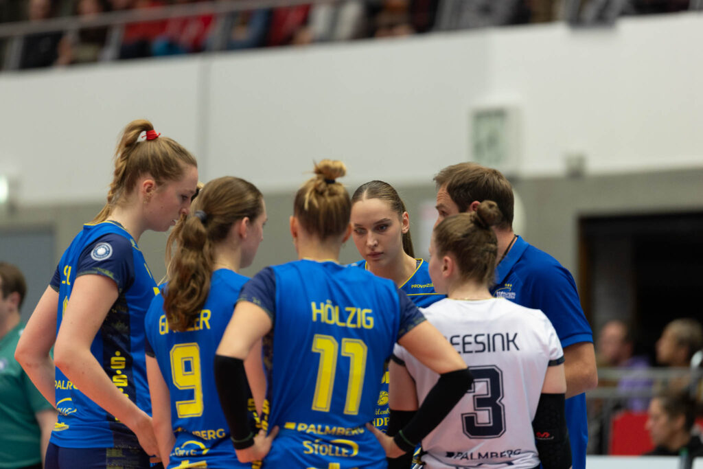 Der SSC Palmberg Schwerin unterlag beim Auswärtsspiel in Suhl mit 1:3, zeigte dabei aber kämpferische Leistungen und teils starkes Spiel bei stabiler Annahme. Vor allem in den ersten beiden Sätzen konnten die Gäste ihre Stärken nicht konstant umsetzen und leisteten sich zu viele Eigenfehler. Im dritten Satz kämpfte Schwerin sich eindrucksvoll zurück, musste sich aber am Ende Suhls druckvollen Angriffen und konsequenter Abwehr nach 4 Sätzen geschlagen geben. Im ersten Durchgang in der Suhler Wolfsgrube kam es für Vedrana Jaksetic und Anna Artyshuk zum Wiedersehen mit ihrem ehemaligen Klub. Der SSC Palmberg Schwerin erwischte den besseren Start und setzte sich früh auf 3:6 ab, worauf Suhl nach zwei kniffligen Situationen eine frühe Auszeit nahm. Diese zeigte Wirkung: Zwei Asse von Monika Brancuska brachten die Gastgeberinnen zurück ins Spiel und sorgten für den 6:6-Ausgleich. Schwerin punktete vor allem über Jet Kok und konnte bei stabiler Annahme sein Angriffsspiel aufziehen, leistete sich im weiteren Verlauf jedoch immer wieder Fehler. Suhl nutzte diese mit viel Druck im Aufschlag, zwang die Gäste häufig zu Problemen in der Annahme und hielt die Partie offen. Bis zur Satzmitte verlief das Spiel ausgeglichen, ehe sich der VfB Suhl Lotto Thüringen mit einem erfolgreichen Pipe-Angriff und einem Schweriner Angriffsfehler erstmals deutlicher auf 15:12 absetzen konnte. Auch nach einer Auszeit der Gäste blieb Suhl am Drücker, ein weiteres Ass von Brancuska erhöhte auf 17:13. Mit einer 20:17-Führung ging es in die Crunchtime, in der Schwerin nach einem Angriffsfehler von Dotson und einem Ass von Jaksetic auf 20:19 herankam. Leana Grozer sorgte kurz darauf für den Ausgleich zum 21:21. Nach einem Aufschlagfehler von der eingewechselten Anne Hölzig und einem starken Angriff von Foley zum 23:21 behielt Suhl die Nase vorn, erspielte sich zwei Satzbälle und entschied den ersten Durchgang schließlich mit 25:23 für sich. Der zweite Durchgang begann zunächst ausgeglichen, als Schwerin beim Stand von 4:4 auf ein paar glücklose Angriffe von Anna Artyshuk reagierte und Mia Kirchhoff auf der Diagonalposition brachte. Suhl blieb in Folge jedoch tonangebend und setzte sich nach druckvollen Angriffen von Dotson auf 7:4 ab. Diesen Vorsprung verteidigten die Gastgeberinnen konsequent und hielten ihn zur Satzmitte vor allem über erfolgreiche Pipe-Angriffe der Liga-Topscorerin Monika Brancuska bei 14:11. Der weitere Verlauf gestaltete sich zunehmend hitzig und war von intensiven Ballwechseln geprägt, in denen Suhl meist die besseren Lösungen fand. Die Angreiferinnen der Wölfinnen punkteten variabel, während Zuspielerin Nagels auch aus schwierigen Annahmesituationen Ruhe bewahrte und ihre Mitspielerinnen gekonnt in Szene setzte. Beim Stand von 18:13 sah sich das Schweriner Trainerteam zur Auszeit gezwungen, worauf die Gäste dank Mia Kirchhoff auf 18:15 verkürzten – ein Zwischenstand, der wiederum Suhl zur Auszeit veranlasste. Ein anschließender Angriffsfehler der Gastgeberinnen brachte Schwerin auf 18:16 heran und sorgte noch einmal für Spannung. Suhl blieb jedoch geduldig und ließ sich nicht aus dem Konzept bringen. Beim Stand von 22:17 erhielt Jet Kok eine kurze Pause, Iris Vos übernahm. Beide Teams punkteten in der Schlussphase mit sehenswerten Einbeiner-Angriffen ihrer Mittelblockerinnen, doch Suhl hielt den Vorsprung souverän. Mit 25:20 ging auch der zweite Durchgang an die Pokalfinalistinnen aus Suhl, die sich mit stabiler Abwehrarbeit und hohem Angriffsdruck durchsetzen. Der erste Punkt im dritten Durchgang ging an den SSC Palmberg Schwerin, der mit Mia Kirchhoff auf der Diagonalposition sowie Anne Hölzig anstelle von Jet Kok in den Satz startete. Ein Ass von Leana Grozer zum 2:5 veranlasste Suhls Trainer Hollosy früh zur ersten Auszeit. Doch das Schweriner „Küken“ setzte direkt von der Grundlinie nach, ehe sowohl ihr als auch Laura Berger auf Suhler Seite Aufschlagfehler unterliefen. Ein erfolgreicher Angriff von Anne Hölzig zum 3:8 zwang Suhl wenig später bereits zur zweiten Auszeit. Schwerin agierte clever und konzentriert, stabilisierte die Annahme und reduzierte die Fehlerquote deutlich, was den Gästen eine komfortable 7:13-Führung einbrachte. Der Vorsprung schmolz anschließend zwar auf 10:13, jedoch weniger durch eine Leistungssteigerung der Gastgeberinnen als durch Abstimmungsfehler zwischen Jaksetic und Gerritsen auf Schweriner Seite. Nach einem Timeout und kurzem Durchatmen stellte der SSC dank Punkten von Grozer und Kirchhoff den Sechs-Punkte-Abstand zum 10:17 wieder her. Suhl startete daraufhin einen Drei-Punkte-Lauf und verkürzte erneut, worauf Schwerin im Mittelblock mit Marije ten Brinke wechselte. Es war jedoch Anne Hölzig, die mit weiteren erfolgreichen Angriffen den Vorsprung der Gäste auf 16:20 ausbaute. Auf Suhler Seite kam über den Außenangriff neue Durchschlagskraft ins Spiel: Ex-Schwerinerin Svea Naujak ersetzte Dotson und verkürzte mit wichtigen Punkten auf 18:20, was Schwerin zur Auszeit zwang. Nach zwischenzeitlichem Sieben-Punkte-Rückstand kämpfte sich Suhl bis auf einen Zähler zum 20:21 heran, doch in der entscheidenden Phase profitierte Schwerin von Fehlern in der Suhler Abwehr und erspielte sich drei Satzbälle. Mit 22:25 behauptete sich der SSC nach der Aufholjagd der Gastgeberinnen und sicherte sich den dritten Durchgang. Ten Brinke, Hölzig und Kirchhoff blieben beim SSC Palmberg Schwerin auch im vierten Durchgang auf dem Feld, während bei Suhl Svea Naujak weiterhin Spielzeit erhielt. Nach dem Satzgewinn der Gäste starteten die Wölfinnen aggressiv in den Durchgang und setzten sich mit starken Blockaktionen und entschlossenem Angriffsspiel früh mit 4:1 ab. Schwerin zeigte sich jedoch unbeeindruckt, blieb mutig und verkürzte auf 5:6, ehe Suhl erneut das Tempo anzog und auf 7:11 davonzog. Eine druckvolle Aufschlagserie von Vedrana Jaksetic brachte den SSC wieder auf 10:11 heran, zudem punktete Mia Kirchhoff wieder