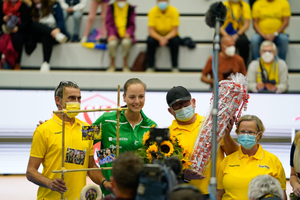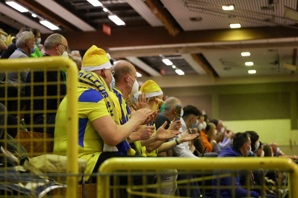 Fans und Team enger zusammen bringen: Mit diesem großen Ziel wurde im Sommer 2016 der SSC-Fanclub „Gelbe Wand“ gegründet. Den neuen Zusammenhalt und die Kraft, die aus der organisierten Fankultur entsteht, spüren die Spielerinnen des SSC Palmberg Schwerin ebenso wie die Mädels vom VCO: „Von beiden Mannschaften haben wir schon viel Zuspruch bekommen und die Bestätigung, dass man auf dem Feld merkt, dass mehr passiert als bisher“, sagt Bodo Westendorf aus dem neunköpfigen Orgateam. Unüberhörbar ist zum Beispiel die verstärkte Fraktion um Trommler Ronny, die daheim und auswärts mit neuen Choreographien anfeuert. „Stolz sind wir auch auf die Auswärtsfahrten, die wir unter anderem mit unserem eigenen Transporter bestreiten.“
